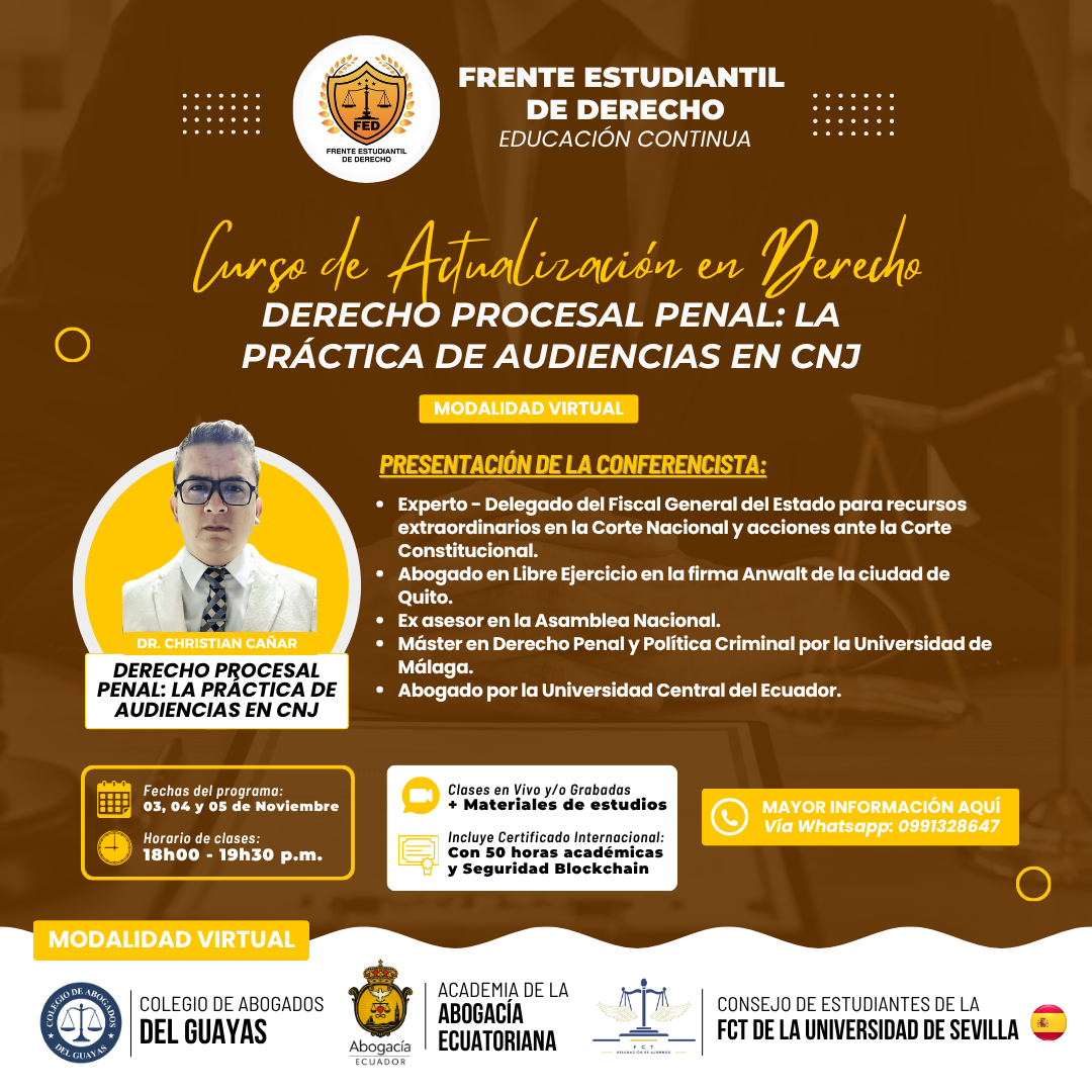 Invitamos cordialmente a los estudiantes de Derecho, Profesionales del Derecho y Comunidad Jurídica a la siguiente programación académica en Derecho 🛒👇: Cursos de Actualización en Derecho para los meses de OCTUBRE, NOVIEMBRE & DICIEMBRE 📣 𝗖𝗨𝗣𝗢𝗦 𝗟𝗜𝗠𝗜𝗧𝗔𝗗𝗢𝗦 - 𝗜𝗡𝗦𝗖𝗥𝗜𝗣𝗖𝗜𝗢𝗡𝗘𝗦 𝗩𝗜𝗔 𝗪𝗛𝗔𝗧𝗦𝗔𝗣𝗣 𝟬𝟵𝟵𝟭𝟯𝟮𝟴𝟲𝟰𝟳📱 𝗥𝗲𝗰𝘂𝗲𝗿𝗱𝗮 𝗾𝘂𝗲, 𝘀𝗶 𝗾𝘂𝗶𝗲𝗿𝗲𝘀 𝘀𝗲𝗿 𝗲𝗹/𝗹𝗮 𝗺𝗲𝗷𝗼𝗿, 𝗱𝗲𝗯𝗲𝘀 𝗳𝗼𝗿𝗺𝗮𝗿𝘁𝗲 𝗰𝗼𝗻 𝗹𝗼𝘀 𝗺𝗲𝗷𝗼𝗿𝗲𝘀! 𝗧𝗘 𝗘𝗦𝗣𝗘𝗥𝗔𝗠𝗢𝗦‼️